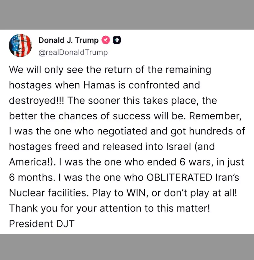 Странно, почему Трамп не ведёт переговоров с лидером хамаса, почему не приглашает его к себе на Аляску?